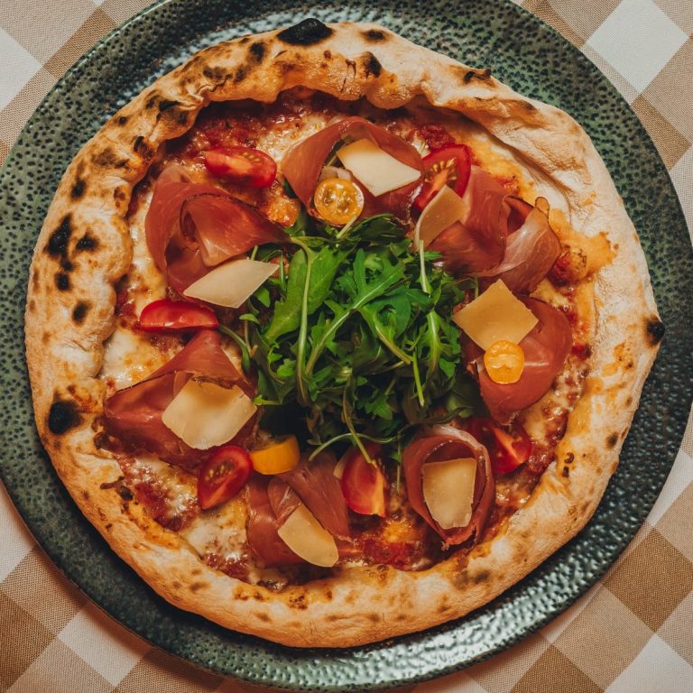 Tomatensoße / Mozzarella / Niederbayerischer Edelschinken / Rucola / Tomaten / Grana Padano