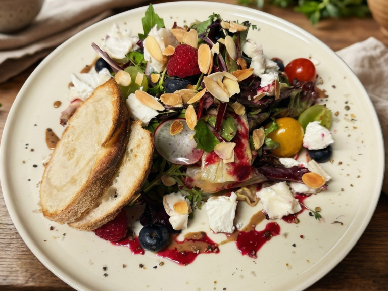 Ziegenkäse / Salatbouquet / Waldfrüchte / Mandeln / Beerendressing