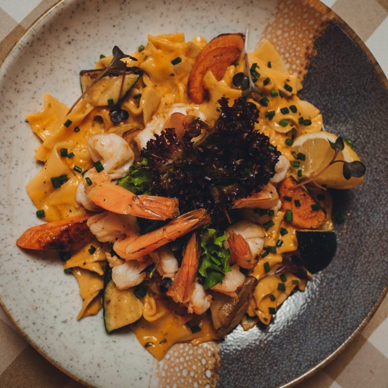 Garnelen / Bandnudel / Zitronen-Hummersoße / Gemüse