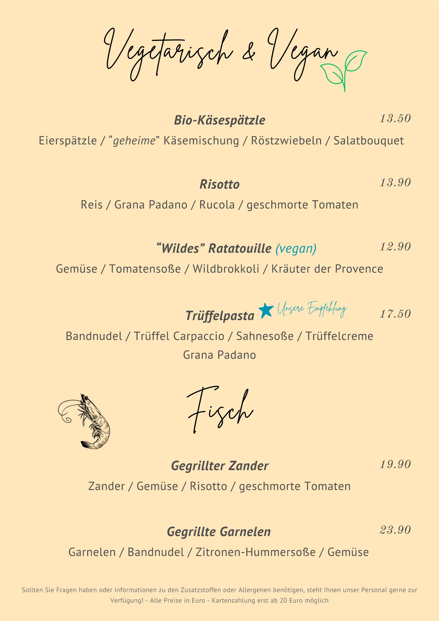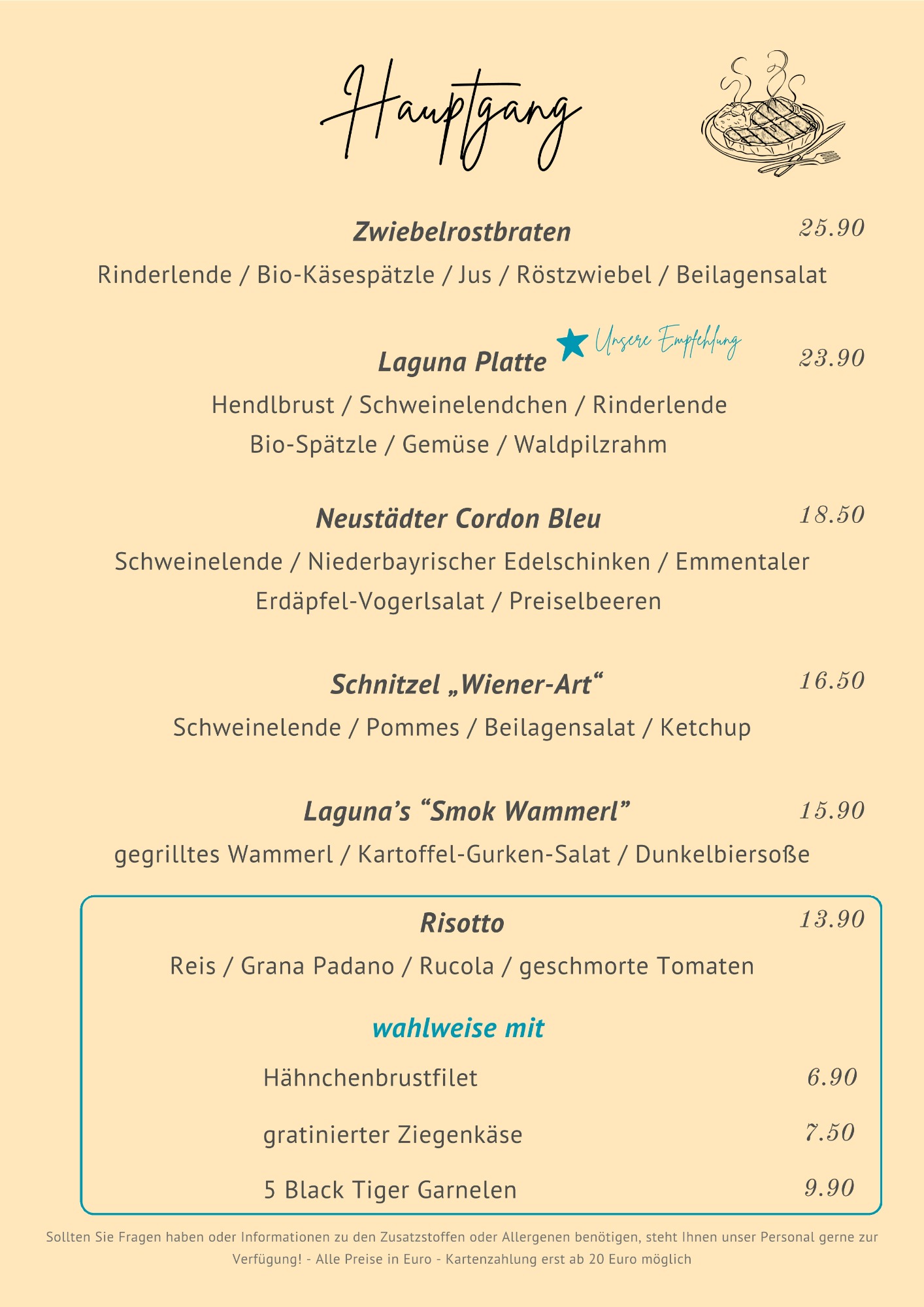 Genießen Sie Ihren Aufenthalt bei uns und lassen Sie sich von unseren Spezialitäten verwöhnen. Auf unserer abwechslungsreichen Speisekarte ist bestimmt das Richtige für Sie dabei.