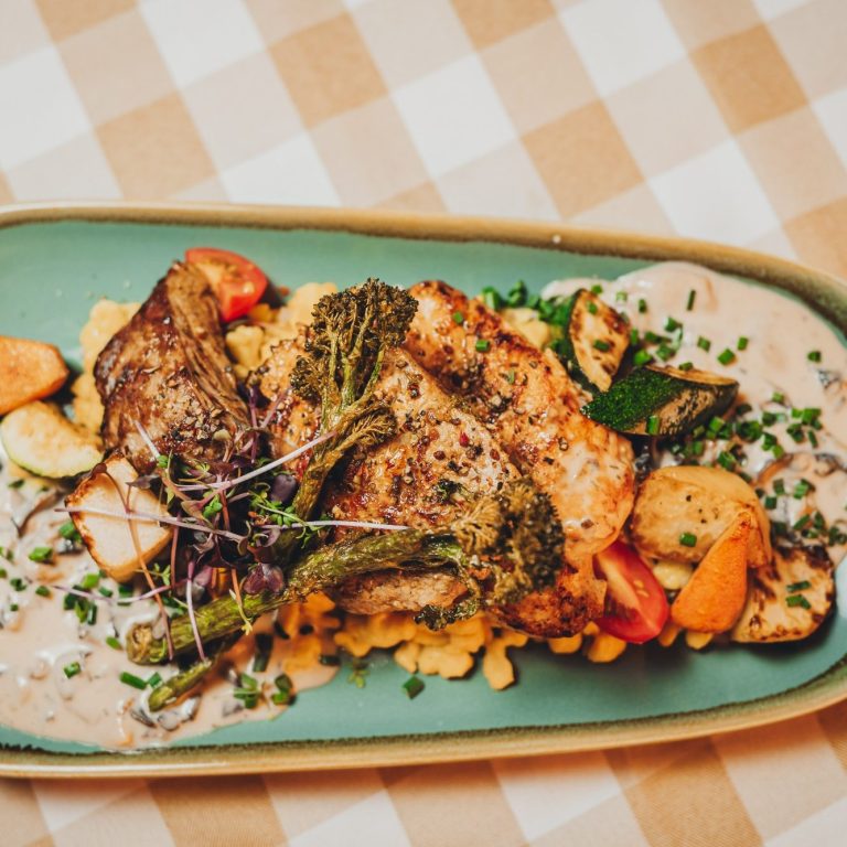 Hendlbrust / Schweinelendchen / Rinderlende / Bio-Spätzle / Gemüse / Waldpilzrahm