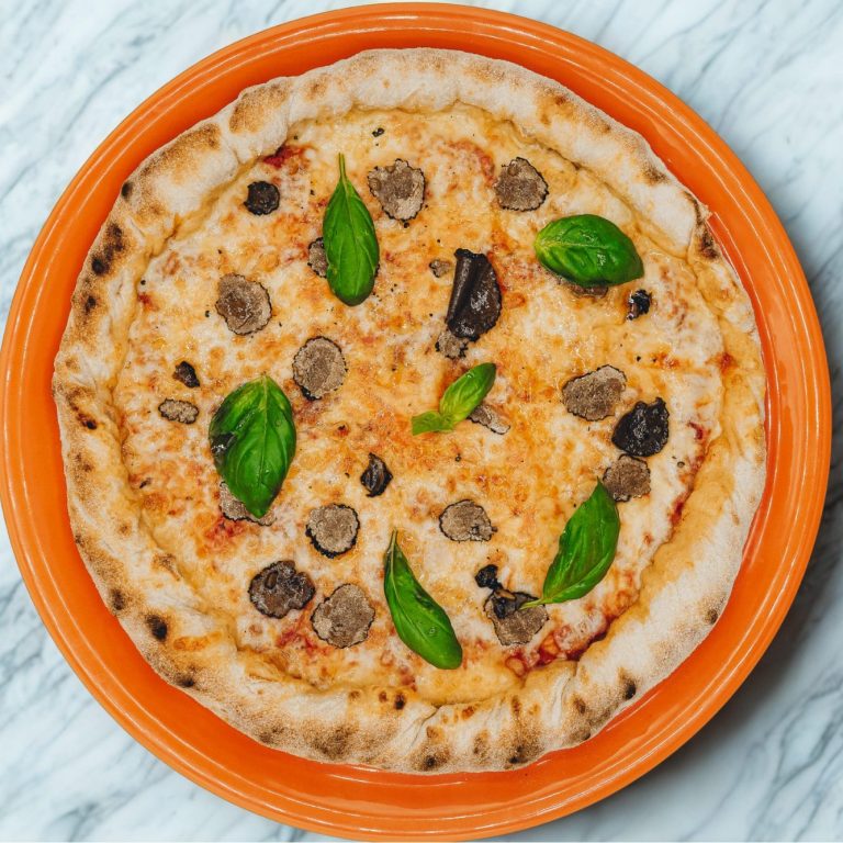 Tomatensoße / Mozzarella / Trüffel Carpaccio / Trüffelöl / Basilikum